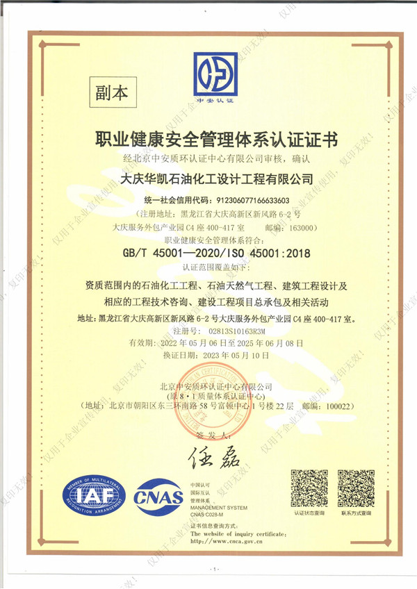 近日,我司順利通過質量管理體系認證,這標志著華凱公司在項目質量體系建設上已經達到了相關標準。質量管理體系認證證書的取得同時也是公司各項管理工作的規范化、標準化的體現,是對公司持續穩定健康發展的重要保證。我們將進一步優化和規范各項管理制度,不斷提高體系運行的有效性,不斷提高公司的管理水平,共同推進公司的快速發展。自此,華凱公司質量管理體系的標準化、規范化及科學化又邁上新臺階。